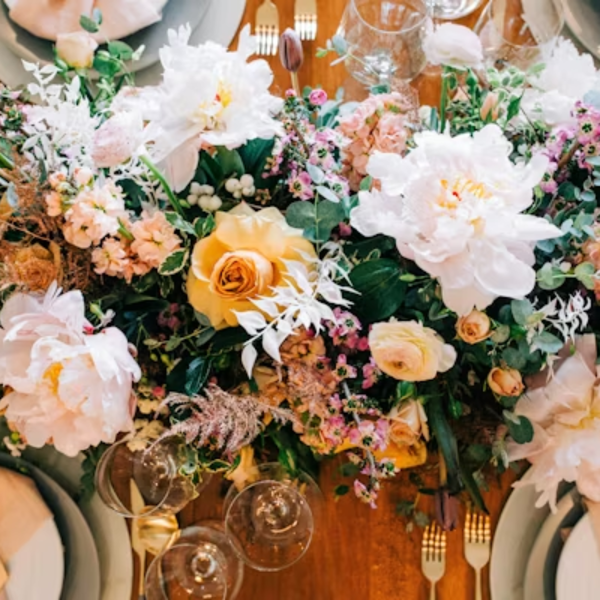 Bouquet bas en centre de table, idéal mariage ou dîner